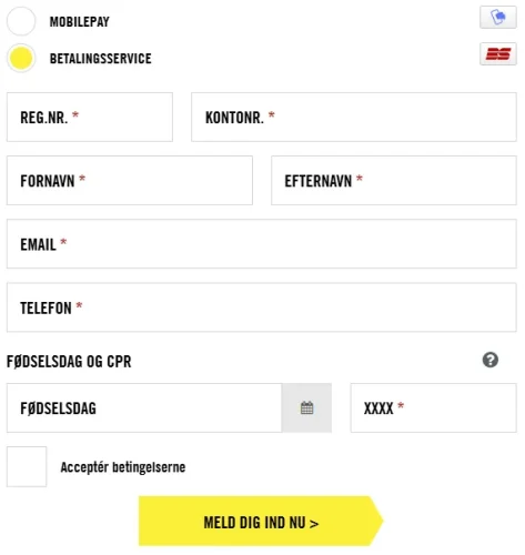 Antallet felter varierer også, alt efter om du vælger at betale med MobilePay eller Betalingsservice. Det er godt for brugerne og for konverteringen, da flere felter ofte reducer antallet gennemførte.