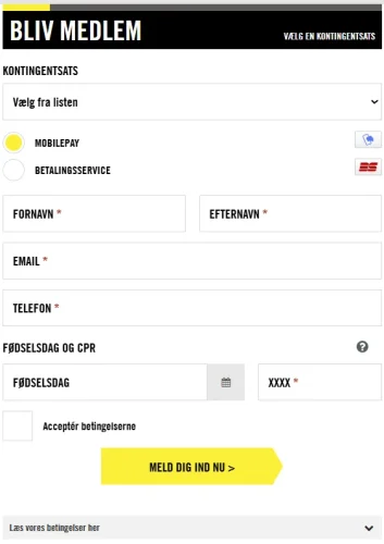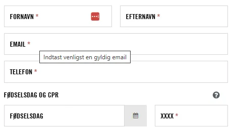 Den sidste del af formularen er lidt usædvanlig. Her får medlemmet nemlig mulighed for at angive fødselsdag og de sidste fire cifre i CPR separat, med en fin mouse-over på dette.