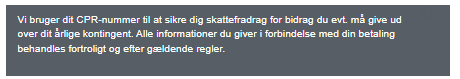 Her står, at ved at angive CPR får medlemmet fradrag på donationer ud over medlemskabet, og at alle informationer behandles efter gældende regler.